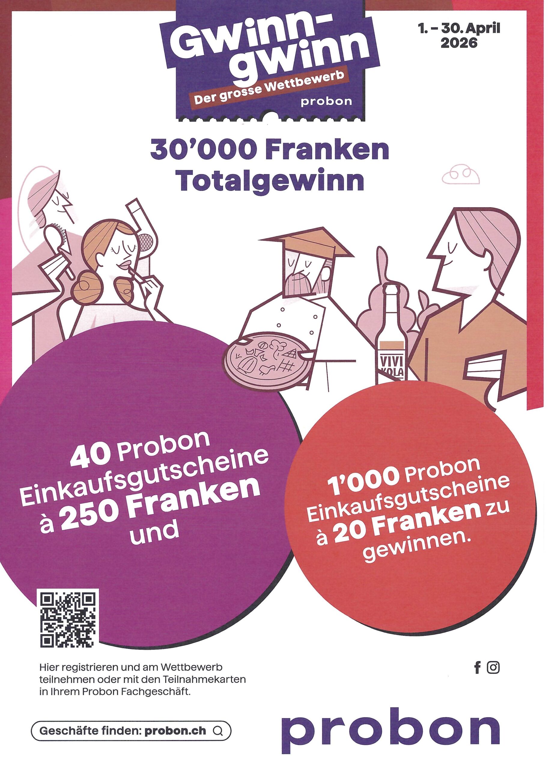 Gegen Abgabe einer vollen Probon-Sammelkarte (Wert 10 Franken) erhalten sie einen Freizeit-Check im Wert von 12 Franken.